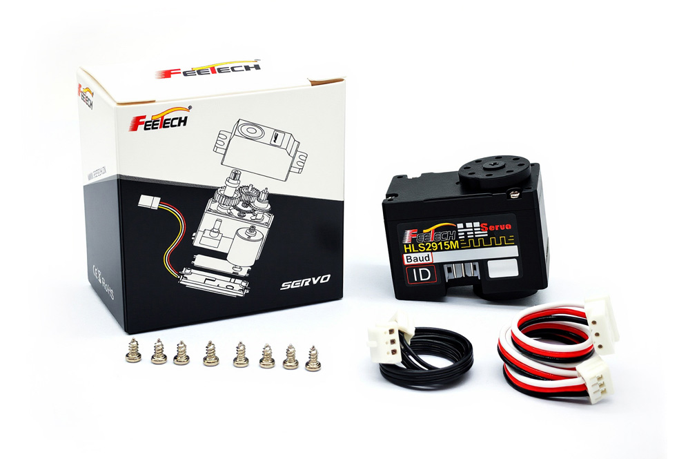 HL-2915-C002 is a 12V 9kg·cm constant-torque dual-axis TTL bus servo, Iron-core Motor、 Coreless Motor,metal gearbox 、feetech self researched and developed ttl control board.the stall torque is 8.9kg.cm,multi-turn continuous operation mode,it can realize the function of setting the middle point with one key,acceleration slow start and slow stop,can feedback position、speed、voltage、current、temperature、load parameters,thus, overload and over-current protection can